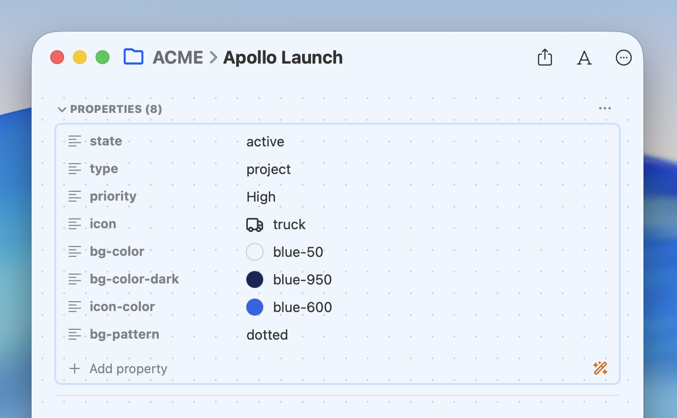 - At the top of your note, click "Properties." (For a daily note, first select "Add Properties" from the top-right menu.)
